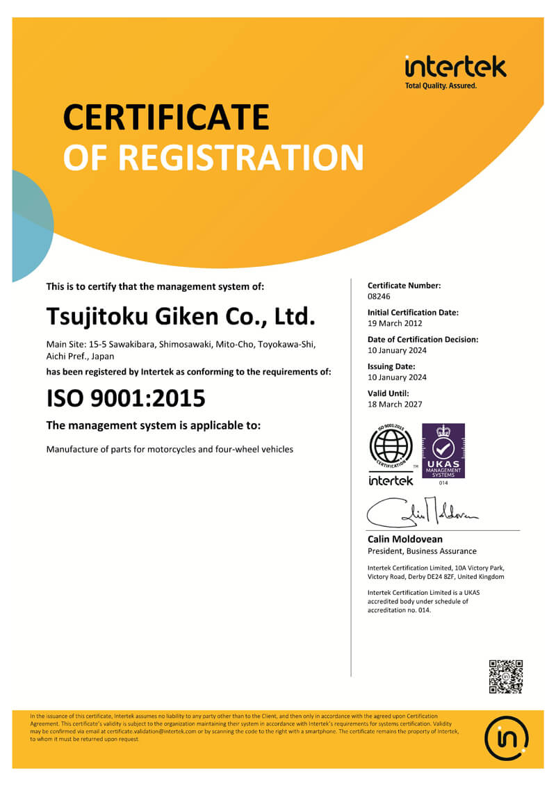 辻徳技研では顧客満足を求め品質マネジメントシステムの継続的活動を展開し、また、品質方針を達成するために品質目標を設定し、定期的にその達成状況を確認・見直し、スパイラルアップを図っております。